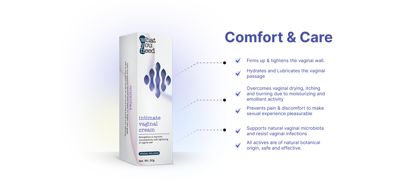 It also strengthens and firms up the vaginal wall, and overcomes vaginal drying, itching, and burning due to emollient activity. Prevents pain and discomfort during sexual experience. Being pH-balanced to vaginal pH helps support the natural vaginal microbiota and resists vaginal infections.