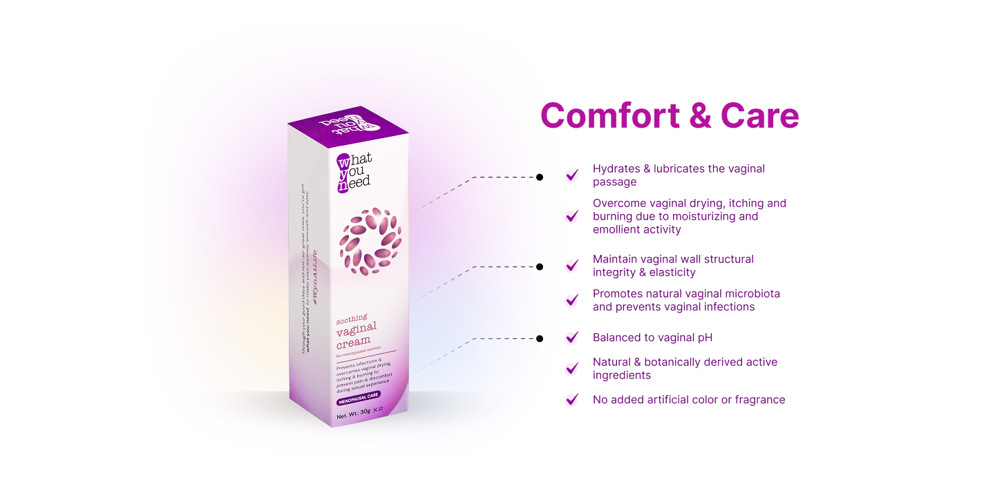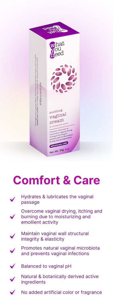 Vaginal discomfort during menopause is often caused by decreased estrogen levels, which can lead to vaginal dryness, thinning of the vaginal walls, and changes in pH. These changes can result in itching, burning, and discomfort, especially during intercourse. This is where WYN’s vaginal itching cream comes in to help prevent such issues.